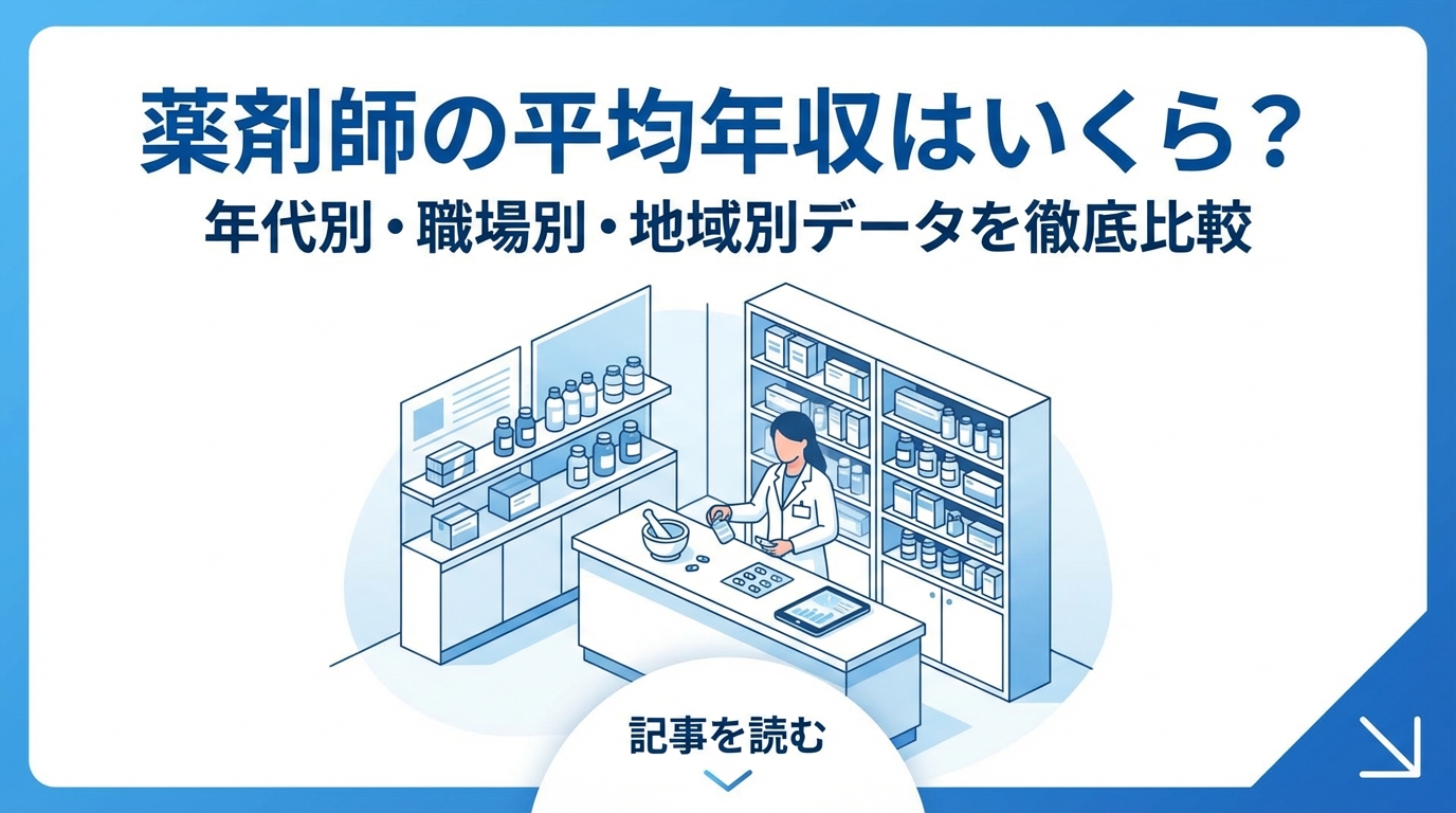 この記事では、職場別・年代別・地域別のデータを一覧で比較し、転職で年収を上げる具体的な方法まで解説します。現職の年収水準を確認したい方・転職を検討中の薬剤師の方はぜひ参考にしてください。