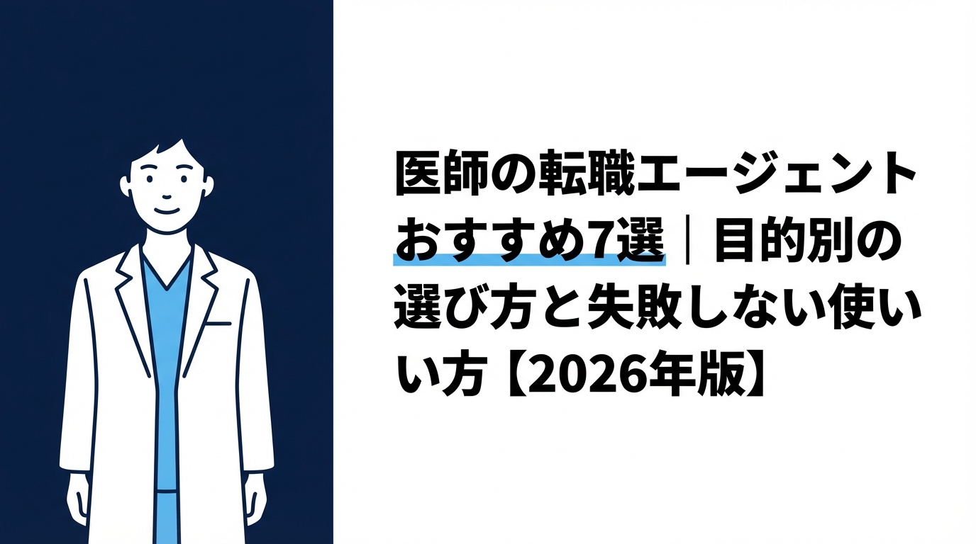 この記事では、医師向け転職エージェントのおすすめ7社を常勤・非常勤・年収アップ・地方転職などの目的別に比較し、失敗しない使い方と複数登録のコツまで徹底解説します。